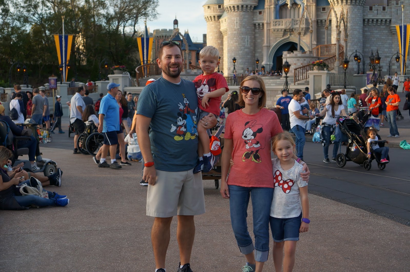 Watching the show in front of the Castle. Carter loved the dancing and singing and that Mickey was included.